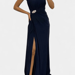 • Signaturdetaljer — Den krydsede halsudskæring og draperede silhuet tilføjer diskret poise og karakter.