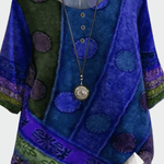 Maja | Blød t-skjorte repræsenterer et eksklusivt bidrag til garderoben, hvor håndværkets arv møder nutidig elegance. Den etnisk inspirerede farvepalette og geometriske mønstre skaber et særpræg, der passer både til afslappede og kreative stemninger. Den bløde, åndbare kvalitet og et velafstemt snit giver en naturlig pasform til daglig brug, uden at gå på kompromis med raffinement. Små detaljer i front, særligt knapperne, tilfører et diskret præg, der løfter looket uden at dominere. Med Maja får du mere end en t-skjorte – du får et stykke med langtidsholdbart håndværk, der taler til dem, der værdsætter vedvarende kvalitet og æstetik i garderoben. Den gennemførte finish og førsteklasses design gør den til en investering i stil, der kan bæres sæson efter sæson og potentielt blive et mindeværdigt designobjekt i en velkoordineret kollektion. Håndværk og arv – designet med omtanke for langtidsholdbar kvalitet og klassiske detaljer. Materialer og komfort – blødt, åndbart materiale sikrer en naturlig pasform hele dagen. Etnisk mønster og farvetone giver et kulturelt præg, mens detaljer og alsidig anvendelse understøtter en tidløs base til casual og boho-stil.